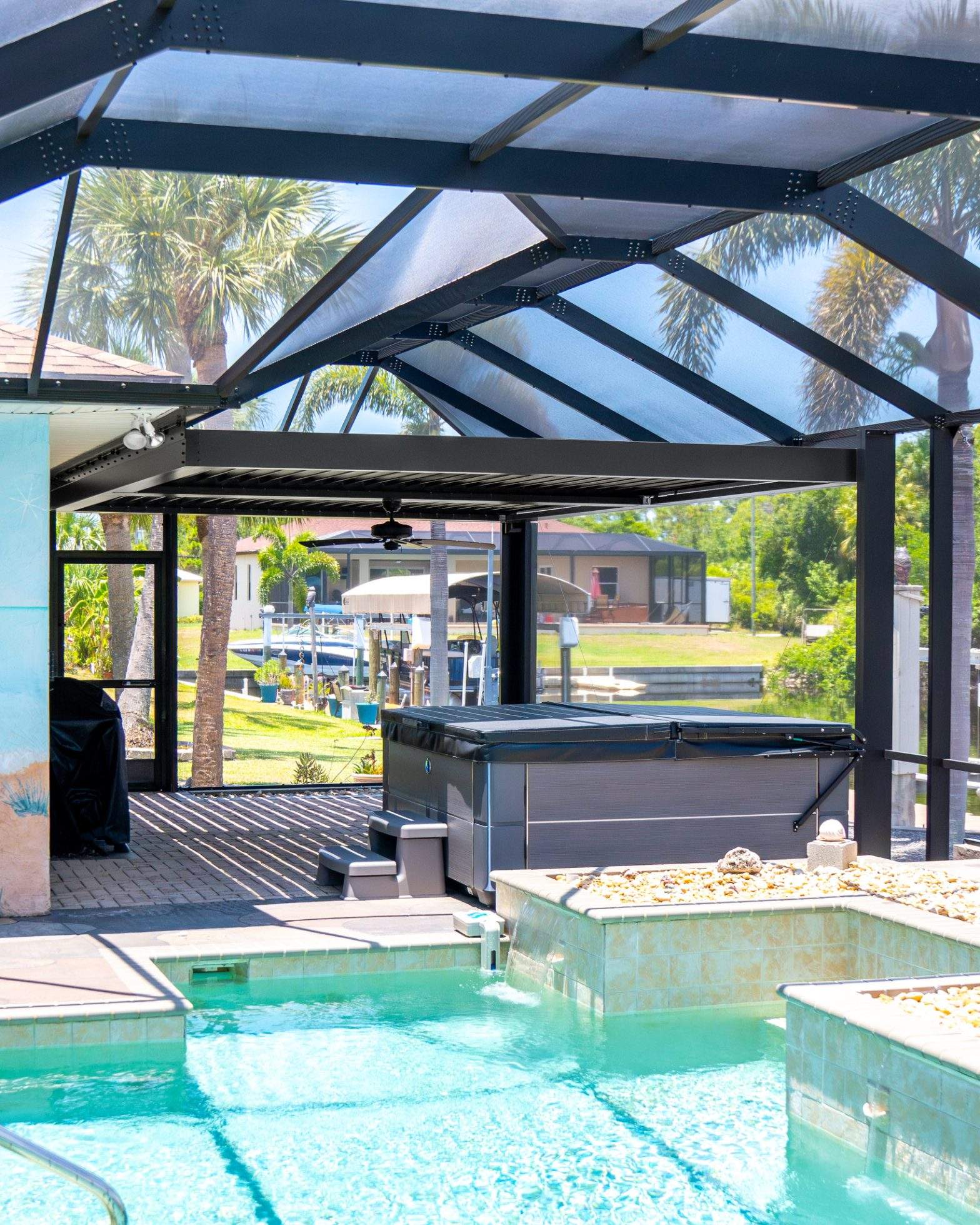 Aluminum is the standard in Florida because it resists rust, humidity, and coastal conditions better than wood or steel. Our frames are strong yet lightweight, and they create a clean, modern look that blends well with both newer homes and classic Englewood properties. They also require very little maintenance, which homeowners love.