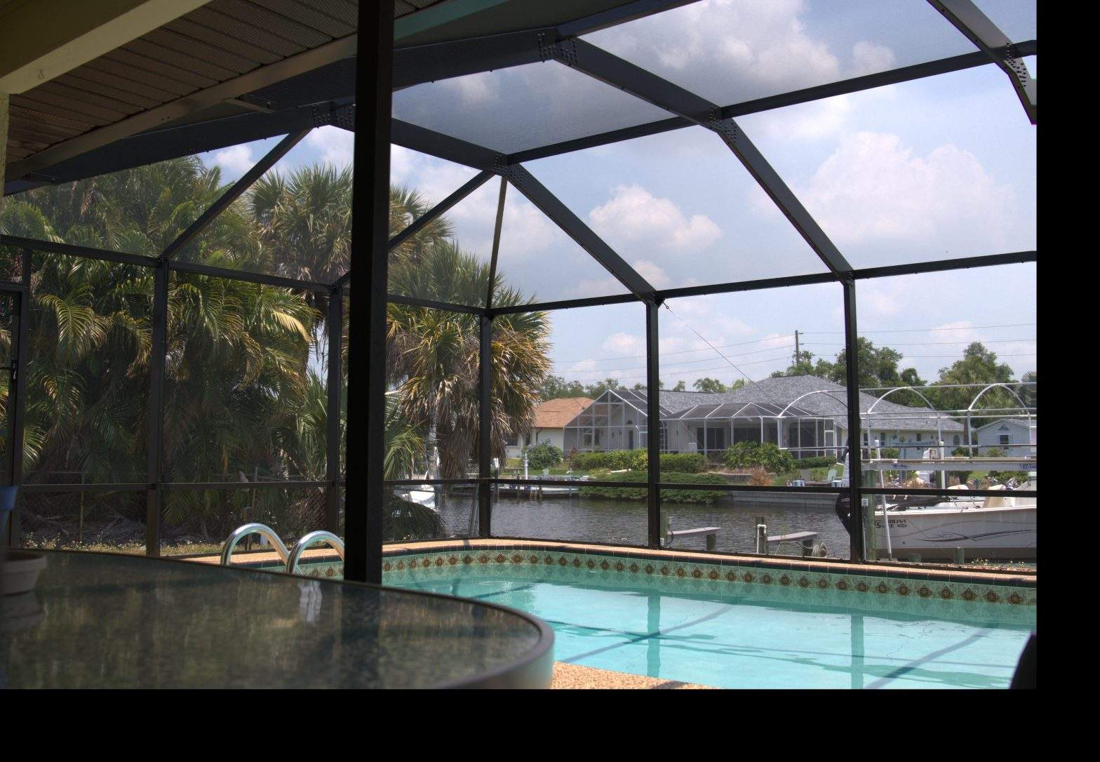A “pool cage” usually refers to the classic screened-in structure that surrounds your pool area, keeping out bugs, debris, and unwanted wildlife. A “pool enclosure” can mean the same thing, or it can refer to a more in-depth system that might include glass, clear panels, or enhanced framing.