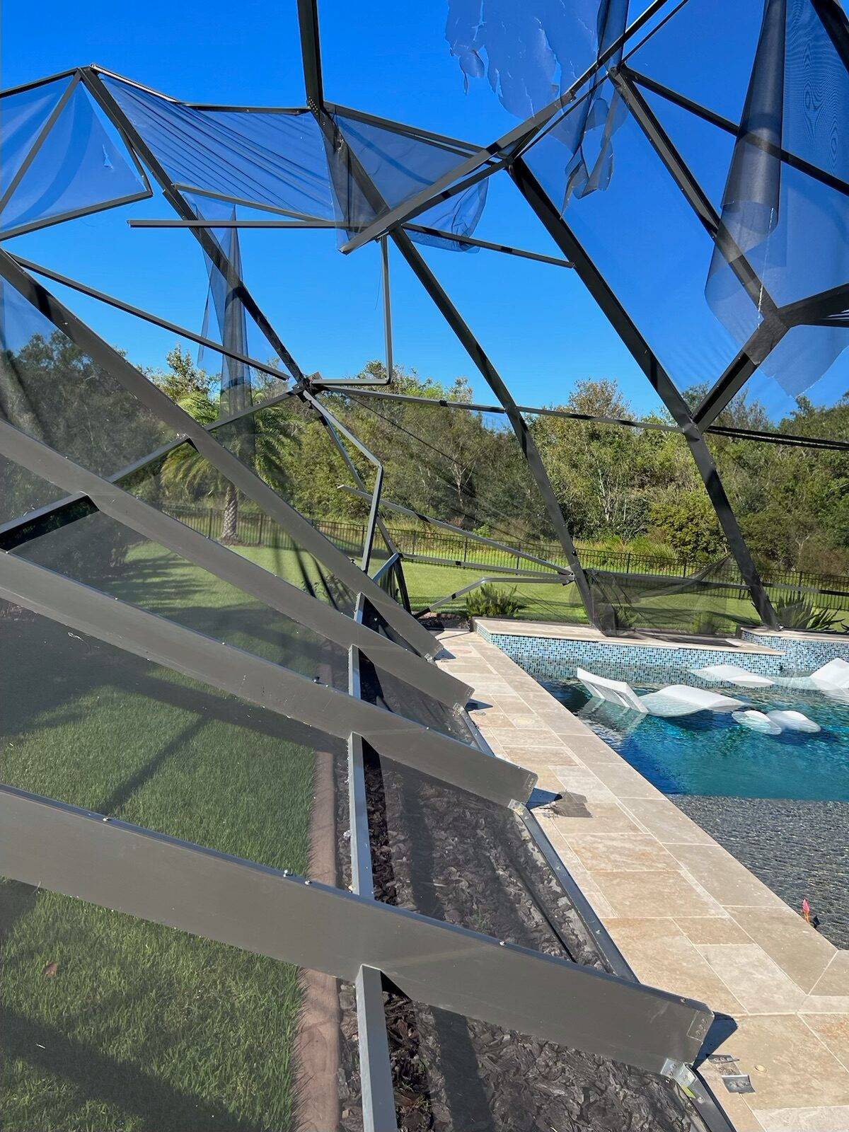 Before you decide to repaint, make sure to review what you would like to accomplish and whether repainting or refurbishing will help you reach that goal. Many pool cage owners have come to realize that if they had been properly educated previously, they would have chosen to invest in a brand new cage that would have withstood storms, such as Ian or Irma, and avoided the financial and logistical challenges they faced.